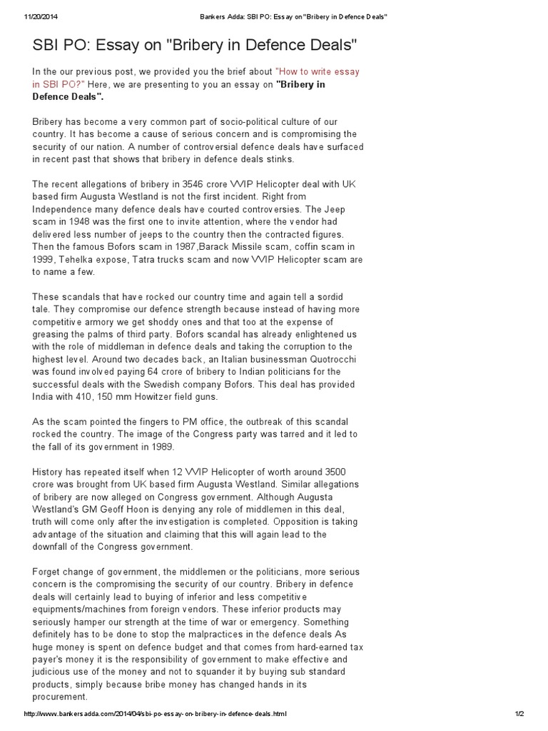 · We have provided Bribery Essay in English, suitable for class 3, 4, 5, 6, 7, 8, 9 & In this evolving & fast-growing world, the act of corruption & bribery is no more considered a sin. Bribery is known as an offering, giving, receiving, or soliciting any item of value that can influence the other person’s decision or blogger.comted Reading Time: 4 mins Bribery essay is one of the most common types given as an assignment to students of different levels. At first glance, writing essay on Bribery can seem like a challenging task. But we've collected for you some of the most skilfully written to provide you with the best examples you can find online. We've found 59 essays on Bribery Essay examples Words Essay on Bribery. As the world is evolving, we see how people are losing their morals too. Things like corruption and bribery have become so common that everyone turns a blind eye to it. Bribery refers to the exchanging of cash, materials or goods. This exchange is done to get some work done through illegal means or to fasten up the blogger.comted Reading Time: 3 mins